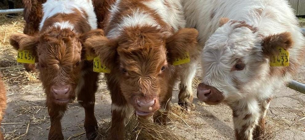 Hier der erste Kälberjahrgang unserer eigenen Kreation, den "Cuxländer Schecken"
